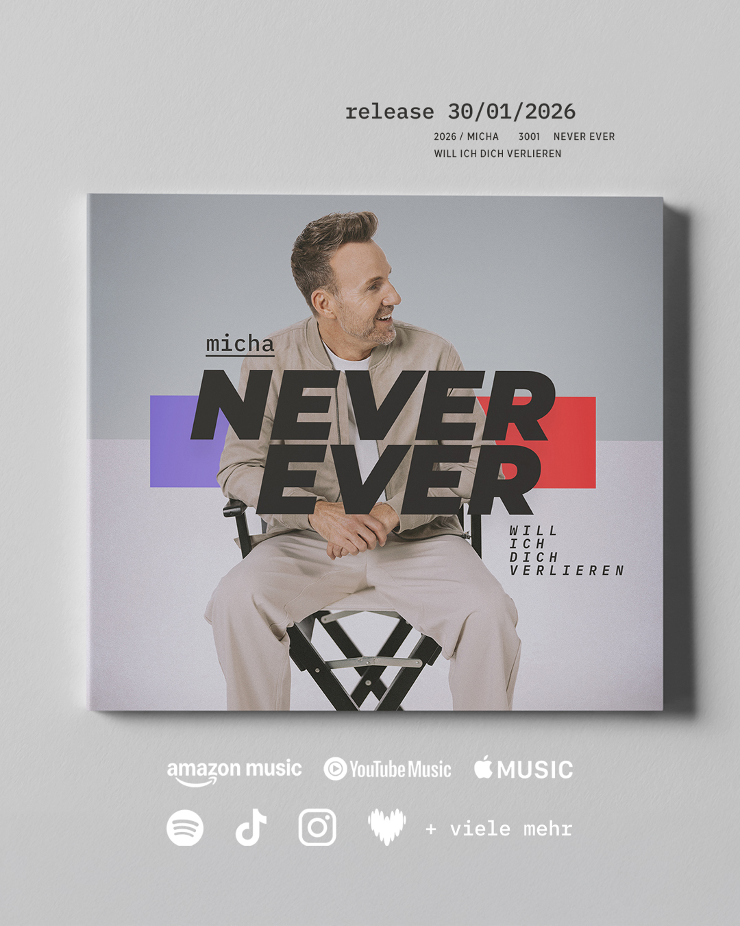 Musikalisch verbindet Micha modernen Popschlager mit Dance- und EDM-Elementen und klaren 90er/Y2K-Vibes. Eingängig, emotional und direkt. Ein Song über große Gefühle, über das Loslassen und darüber, dass manche Versprechen echt sind – auch wenn sie nicht für immer halten.